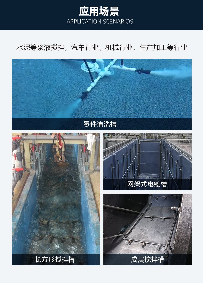 液體中蝕刻、液體中清洗、電鍍液攪拌、槽內(nèi)液體攪拌等。